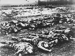 The killings were the first act of mass murder committed by the Ustaše upon coming to power.[38][39][40] Estimates of the number of victims vary. Marko Attila Hoare, a historian specializing in the Balkans, puts the figure at 184 killed.[41] The journalist Tim Judah writes that there were 187 fatalities.[38] Other historians, such as Ivo Goldstein and Mark Biondich, mention 196 deaths.[39][40]