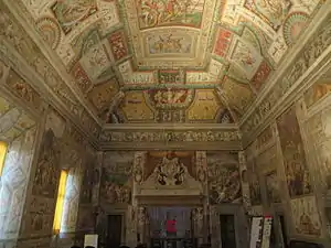 The sala delle Gesta Rossiane in the Rocca di Rossi, with paintings showing Guido's conduct at Calliano.