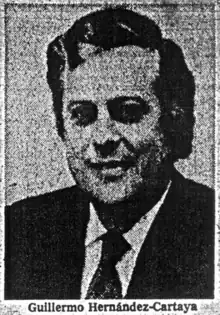 Guillermo Hernández-Cartaya was a Cuban banker born sometime in 1932[1] (the New York Times described him in 1977 as in his "mid-fifties"); he spent 20 years as a banker in Cuba.