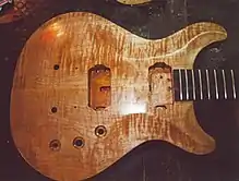A guitar body, crafted from wood.