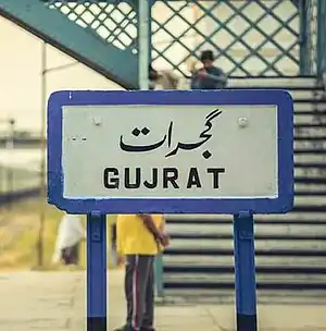 Gujrat Railway Station (Urdu and Punjabi: گجرات ریلوے اسٹیشن) is located in Gujrat city, Gujrat District of Punjab province, Pakistan. It is an important station on Karachi–Peshawar Railway Line. The railway station serves the city of Gujrat and its surroundings. Almost all the passenger trains that run between Lahore and Rawalpindi make a stop in this station. The station has a overhead bridge for motorcyclists.