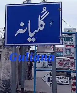 Guliana, also spelt Galiana and Gulyana, is a town Union Council of Gujrat District in the Punjab Province of Pakistan.[2] It is located at 32°48'0″N 73°58'0″E and has an altitude of 270 metres (890 ft).[3]