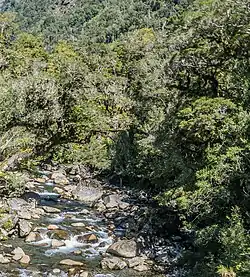 The Esperance River is a 3 km (1.9 mi) tributary flowing from the west off Mount Isolation.[6] Large rimu and beech trees line the river up to about the 500 m (1,600 ft) contour.[7]