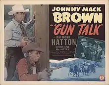 Gun Talk is a 1947 American Western film directed by Lambert Hillyer and written by J. Benton Cheney. The film stars Johnny Mack Brown, Raymond Hatton, Christine McIntyre, Douglas Evans, Geneva Gray and Wheaton Chambers. The film was released on December 20, 1947, by Monogram Pictures.[1][2][3]