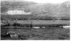 The actual Gundadalur Stadium is located just alongside Tórsvøllur. It was opened in 1911. There are two sports halls in the same area. Høllin á Hálsi is the oldest one; built in 1970, it is located just above Tórsvøllur. The sports hall has been owned by Tórshavn Municipality since 2004.[2] Gundadalshøllin is the other sports hall, lying below and south of Høllin á Hálsi. Both sports halls are mainly used for handball and volleyball, but also for other public events, not related to sports. Gundadalshøllin is owned by the handball clubs Neistin and Kyndil, and the volleyball club Fleyr. There is also a swimming hall in Gundadalur that was built in 1984. It has one swimming pool which is 25 meters long with six lanes, and it has three other pools: one deep, and two not-so-deep pools which are mainly for children.[3] There is a gymnastics venue inside a hall at the north-eastern side of Tórsvøllur; it is called Fimi and is owned by Tórshavn Municipality. Outside the western corner of the Gundadalur Stadium is a sportshall for badminton, it is called Badmintonhøllin. North of the badminton hall is a tennis venue. Just outside the valley of Gundadalur is a venue for athletics, named Tórsbreyt.