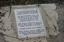 Plaque at the new entranceway to the Gundaroo Catholic Pioneer Cemetery.