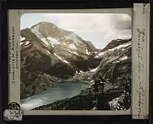 Lantern Slide image of Gunsight Lake with Mount Jackson in background