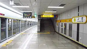 Guryong station is a station on the Suin–Bundang Line of the Seoul Metropolitan Subway network in South Korea. It is in the Gaepo-dong area of the Gangnam district of Seoul. The station opened on October 24, 2004.[1]