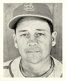 The Giants traded Mancuso to the Chicago Cubs before the 1939 season where he shared catching duties with 38-year-old player-manager Gabby Hartnett.[4] He ended the season with a .231 batting average with only two home runs and 17 runs batted in.[1] With the shortage of major league players due to the Second World War, Mancuso saw his career extended for another four years.[4] He played the 1940 season with the Brooklyn Dodgers before the Cardinals brought him back to St. Louis for the 1941 season.[1] Mancuso helped develop the Cardinals' rookie catcher and future star, Walker Cooper but, when Cooper was injured, Mancuso caught the majority of the Cardinals' games in 1941.[4] He was credited with helping the Cardinals to a second-place finish due to his work with rookie pitchers Ernie White (17-7) and Howie Krist (10-0), but only managed to post a .229 batting average.[30][31][32]