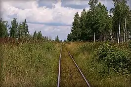 Gusevskoye peat railway emerged in the 1920s, in the area Gus-Khrustalny District, in a settlement named Gus-Khrustalny in 1931 became a town. The railway had a maximum length of about 100 kilometres (62 mi) at their peak.[1] Gusevskoye railway was built for hauling peat and workers and operates year-round with several pairs of trains a day. At present only 25 kilometres (16 mi) of the railway is operational, current operations include passenger traffic (workers-tourists) and freight traffic, transportation of peat. A peat briquette factory was built and put into operation in 2010 in a settlement named Gusevskiy.[2] A peat briquette factory was built and put into operation in 2011 in a settlement named Mezinovskiy.[3] About 2011 half of the railroad was dismantled. Formed two separate railway network.