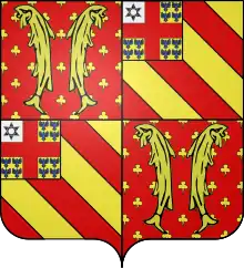 - Jean I of Nesle-Offémont (fr) (c. 1285 – 1356), Seigneur of Offemont, Mello (jure uxoris or inheritance from Marguerite of Mello?) and partly Thourotte. Governor of Coucy. Jean was a counsellor of King Philip VI, Grand Chamberlain of France and Grand Queux of France from 1345. In 1347 he was appointed executor of the testament of King Philip VI. He married b.1320 Marguerite, Dame of Mello. About 1326 he married Marguerite of La Roche-Guyon (c. 1309 – c. 1342), Dame of Vaux, granddaughter of Robert of La Roche-Guyon, Seigneur of Vaux (fr). (These two wives may actually be the same person, and at least one more wife is mentioned, Béatrice of Erquery.) Jean fathered at least the following three: