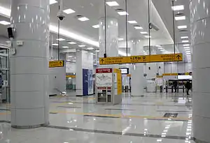 The station is the country's first subway station to have an underground bus transfer station which was planned to open in early March 2016, where screen doors are installed on bus platforms so bus riders from all over Suwon can transfer to the subway directly by walking down only one floor.[1]