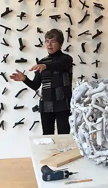 She expanded the boundaries through the development of dramatic new installations and the use of new kinds of materials. She is particularly well known in the areas of: 1) sculpture; 2) installations; 3) word works; 4) basketry.[4]  She has won awards including the National Endowment for the Arts Award of Distinction.  Her works are held in the permanent collections of the Smithsonian, the Philadelphia Museum of Art, and the San Francisco Museum of Modern Art, among others.  In 2003, The Oral History Center of the Bancroft Library at UC Berkeley, released her oral history.[5] Her personal papers are in the Smithsonian Institution, Washington, DC.[6]