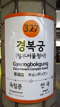 - ↑ "Gyeongbokgug". Seoul Metro. Archived from the original on 2017-10-30. Retrieved 2017-01-20.