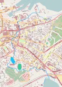 The course of the river in the end of 19th century shown on a map of modern Tallinn