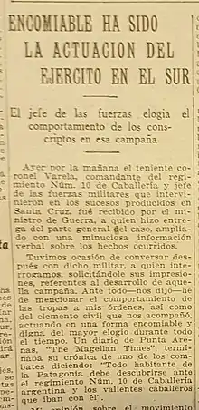 - ↑ Larraquy, Marcelo (7 November 2021). "La Patagonia Rebelde: el fusilador que buscó un reconocimiento oficial pero terminó muerto por venganza". Infobae (in Spanish). Archived from the original on 25 April 2022. Retrieved 25 April 2022.