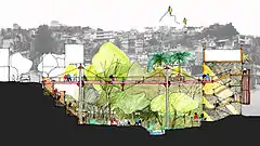 Another example is The Sílvio Baccarelli Residential Project (finished in 2013) but known as the Heliópolis Gleba H.[10] The reurbanization and housing project in Heliópolis, one of the largest Brazilian favelas located in the South zone of São Paulo, is the second project done by the office in this area. Complex and innovative, this project reorganizes and shapes empty spaces left between pre-existing COHAB (São Paulo Metropolitan Housing Company) buildings in the same block, integrating them into a great new urban complex.