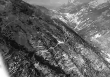Hotel du Barrage and Dixence valley below the La Grande Dixence dam