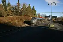 Høvik Station (Norwegian: Høvik stasjon) is a railway station of the Drammen Line situated at Høvik in Bærum, Norway. Located 10.72 kilometers (6.66 mi) from Oslo Central Station, it is served by line L1 of the Oslo Commuter Rail. It is located in a residential area and has four regular hourly services operated by Vy. The station features two accessible side platforms and an underpass. There are five tracks, three of which are used for turnaround, parking and splitting of trains.