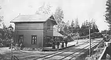 The new station building opened on 22 February 1922. The main floor featured a common office for the station master, signaling control, telegraphy and ticket sales, a room for cargo handling and a waiting room for passengers. The station master's apartment in the upper story consisted of four rooms and a kitchen. However, it had limited space due to roof angles and steep stairs. There was also a cargo building on the platform and the station featured six tracks at the time. In 1926 the station was staffed by a station master, a clerk, a switcher, five telegraphists, six station workers and a journeyman.[12]