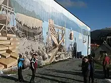 The Høylandsbygd shipping mural is a wall mural located in Høylandsbygd in Kvinnherad. It is the biggest painted mural in the world, with the larger of the two painted walls being 80 metres long and 16 metres tall. The total area of both paintings is 1,500 m2.[1][2][3]
