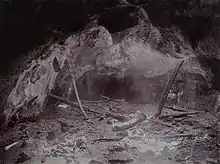 On this last trip, he visited several cave formations near Mumbannar, Victoria. Whilst in these dark limestone caves he used a very early form of flash photography, burning magnesium ribbon during long exposures of up to forty minutes, which created a detailed view of the interior of the dark caves.