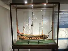 A model of HDMS Fredericus on display in the Heering House in Copenhagen.