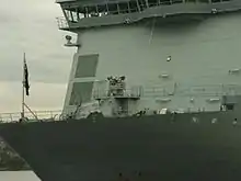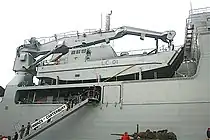 Berthed at the Devonport Naval Base, Auckland, November 2007 showing one of the boat bays located around 3 metres (9.8 ft) above the waterline.