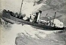 On 4 November 1963, Hautapu struck an unidentified object and was run aground off the Marlborough east coast, damaging the rudder, and was pulled towards the beach despite her being in full astern.[7] All eight crew members onboard survived. Following this there were attempts to salvage the Hautapu, but none would succeed. Hautapu was eventually salvaged on 29 April 1964, and was towed to Wellington. Once salvaged it was found vandals had stripped the vessel of most of her gear.[8] When Hautapu reached Wellington, she would be taken on to a slipway for inspection, to determine the fate of the ship. After the inspection she was declared a total loss as it was found the waves had damaged her structurally, with repair being considered futile.[4] As they owned the trawler Taiaroa (formerly HMNZS Waikato) New Zealand fisheries decided to keep Hautapu for spare parts for Taiaroa.[4] After two years Hautapu was offered to the Royal New Zealand Air Force (RNZAF) to be sunk, which they accepted.[4] She was to be towed by HMNZS Inverell, and attacked by de Havilland Vampire and English Electric Canberra jets.[9] Plans of sinking her were postponed after the MV Kaitawa sank with all hands lost, with the Inverell being sent to locate her wreck.[4] However, on 2 June 1966, Hautapu sank at Shelly Bay after a stern charge was detonated, which was placed there in case the RNZAF could not sink the Hautapu.[10] After the sinking, there was a legal dispute on who owned the wreck, with the RNZAF claiming that the New Zealand Fisheries Ltd still owned the wreck, and the New Zealand Fisheries Ltd claiming the RNZAF owned the wreck, resulting in a six-year legal battle.[11][10] In July 1972, after another gathering of officials, the Secretary of Defence would assist in removing the wreck of Hautapu, while denying ownership of her.[10] She was cut up in 1972–1973 by divers of the Royal New Zealand Navy, with the floating crane Hikitia raising the sections ashore to be scrapped.[10]