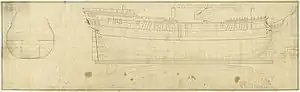 Africa was a 64-gun third-rate Inflexible-class ship of the line designed by John Williams.[3][1] Her class was a smaller version of the 74-gun ship of the line HMS Albion designed by Sir Thomas Slade which in turn was influenced by the 1719 Establishment design of the 90-gun ship of the line HMS Neptune.[3]