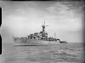In February 1947 she was transferred to the Mediterranean Fleet, stationed at Haifa with the 5th Frigate Flotilla to carry out patrols to intercept ships bringing illegal Jewish immigrants to Palestine.[1]