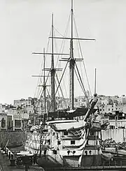 ![]() HMS Hibernia at Malta's drydocks around 1860 | |