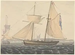 HMS Hornet was a former Dutch hoy of 60 tons that the British Admiralty purchased in 1794 for service with the Royal Navy. After the Admiralty purchased Hornet she underwent fitting between March and 18 April at Deptford. Lieutenant Robert Bayley commissioned her in April. She was paid off a year later in April 1795, sold in July, and broken up at Sheerness the same year.[1][2]