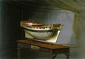![]() Painting by Joseph Marshall (1773–1775) of Kingfisher hull model | |
