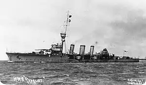 HMS Royalist was one of eight Arethusa-class light cruisers built for the Royal Navy in the 1910s. She fought in the First World War, participating in the Battle of Jutland. Following the war, she was scrapped.