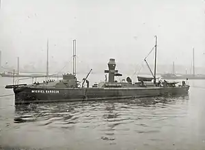 Michiel Gardeyn was commissioned in to the Koninklijke Marine in 1905. She was sunk in 1921 as target ship during an airstrike exercise together with the torpedo boats Draak and Krokodil.[1][2]