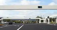 Hacienda was one of the largest projects of its kind ever approved and built in California. It was designed with visually striking gateway arches spanning peripheral entrances and key intersections. The developers explained they were trying to create an unforgettable visual signature to grab the attention of corporate facilities managers touring California to identify candidate sites for future facilities: "They will see numerous projects and go back to their offices with stacks of brochures—they will never forget Hacienda".[4]