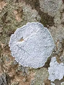 - ↑ Harris, Richard C.; Brodo, Irwin M. & Tønsberg, Tor (Winter 2000). "Lecanora thysanophora, a Common Leprose Lichen in Eastern North America". The Bryologist. 103 (4): 790–793. doi:10.1639/0007-2745(2000)103[0790:LTACLL]2.0.CO;2. JSTOR 3244346. S2CID 85751323.