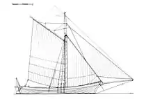 A Haffboot (plural: Haffboote) is the collective term for a type of sailing boat that is used as a fishing or cargo boat on the shallow Baltic Sea coast, in the Bay of Greifswald, the Stettin Lagoon and their neighbouring waterbodies until the 20th century. Using similar or identical designs for the ship's hull and its cargo hold, the fishing boats were built with wet or dry cargo holds. The flushed cargo hold, often called a Bünn in the Baltic Sea region, is not sealed hermetically from the water, but is filled with surrounding water. Small holes in the outer skin of the boat enable an exchange of water between the bünn and the outside water. The fish that are caught can thus be transported live. In a traditional fishing boat without cooling units, this allowed the time delay between catching the fish and landing them to be extended. Around the turn of the 19th and 20th centuries, haffboote were active on the Neuwarper See and in the lower Oder delta. They were built as shallow-draughted, broad-beamed clinker built vessels at small boatyards in Neuwarp (now Nowe Warpno), Anklam or Ueckermünde.[1]