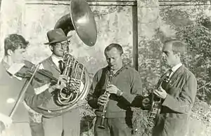 ![]() The original Hagaw lineup: Kowalski (violin), Jastrzebski (sousaphone), Bielecki (clarinet), Brudko (banjo) | |