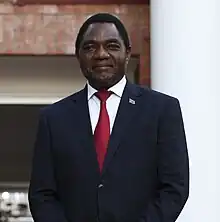 Hakainde Hichilema (born 4 June 1962) is a Zambian businessman, farmer, and politician who is the seventh and current president of Zambia since 24 August 2021.[1] After having contested five previous elections in 2006, 2008, 2011, 2015 and 2016, he won the 2021 presidential election with 59.02% of the vote.[2] He has led the United Party for National Development since 2006 following the death of the party founder Anderson Mazoka.