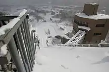 Hakuba Ski Jumping Stadium is a ski jumping hill in Hakuba, Japan. It hosted the ski jumping and the ski jumping part of the Nordic combined events at the 1998 Winter Olympics. The stadium holds a maximum of 45,000 spectators, and was built in 1992.