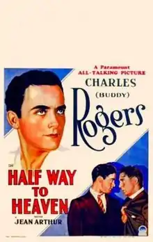 Half Way to Heaven is a 1929 American Pre-Code drama film directed by George Abbott and written by Abbott, Henry Leyford Gates, and Gerald Geraghty. The film stars Charles "Buddy" Rogers, Jean Arthur, Paul Lukas, Helen Ware, Oscar Apfel and Irving Bacon. The film was released on December 14, 1929, by Paramount Pictures.[1][2] As was common during the early years of sound before dubbing became more established, several multiple-language versions were produced at the Joinville Studios in Paris including a Swedish-language version Half Way to Heaven.
