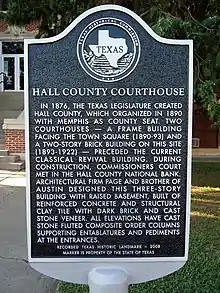 2. "Hall County Courthouse" Texas Historic Sites Atlas. Retrieved Oct 4, 2009.