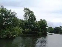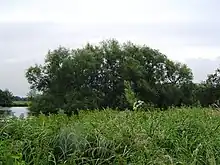 The island is large and triangular shaped, forming a pair with The Lynch, a similar shaped island. It is uninhabited and covered with a wide variety of trees. Although it is positioned towards the Oxfordshire bank of the river, it is actually in Berkshire.[4]