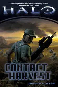 Halo: Contact Harvest is a military science fiction novel by Joseph Staten. Released in October 2007, it is the fifth novel based on the Halo video game franchise. Staten was a longtime employee of Bungie, the developer of the Halo video game series; he directed the cut scenes in the video games and is a major contributor to Halo's storyline. He set out to write a novel that appealed to gamers, as well as those who had never read a Halo novel.