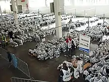 ![]() 20,000 cloth bags waiting for the athletes during the 21st Conergy Hamburg Marathon in 2006 | |