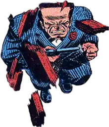 Hammerhead is a supervillain appearing in American comic books published by Marvel Comics. The character is primarily depicted as an adversary of the superhero Spider-Man. He is a temperamental mobster who often dresses and acts in the 1920s style, and a prominent member of the Maggia, a fictional organized crime syndicate.[2] Following an accident, he had most of his skull replaced with an inflexible steel alloy by Jonas Harrow, giving his head a flattened shape and near-indestructibility, hence his nickname. The Hammerhead crime family, of which he is the second and current head, is named after the character.
