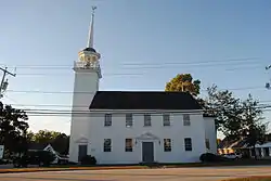 The Hampstead Meetinghouse, also once known as Hampstead Town Hall, is a historic meeting house at 20 Emerson Avenue in Hampstead, New Hampshire. The core of this dual-purpose (religious and civic) structure was begun in 1749, although its interior was not completely finished until about 1768. It is one of a number of fairly well-preserved 18th-century meeting houses in southeastern New Hampshire, and was listed on the National Register of Historic Places in 1980.[1]
