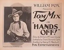 Hands Off! is a 1921 American silent Western film directed by George Marshall and starring Tom Mix, Pauline Curley and Charles K. French.[1]